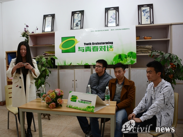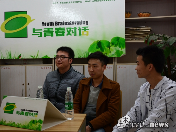 3月17日晚7点半,由太阳成集团tyc7111cc主办、大学生学业与发展指导中心承办的访谈类节目《与青春对话》于三号党建活动室举行。此次节目的主持人为2015级土木16班的魏云格同学,接受采访的三位学长分别是来自2014级土木10班的贾文涛、邵晨超同学以及15班的吴强亮同学。
