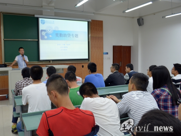 9月17日晚7点,土木学院在犀浦校区X4157、X4158召开奖勤助贷专题讲座。13级辅导员谢全柯和14级辅导员任福负责本次课堂主讲,向2015级新生系统地介绍学校的奖励与资助机制。