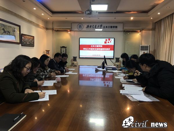 2018年12月27日下午16:00,土木学工组党支部在九里校区1210会议室开展教师思想政治与师德师风测评工作,并进行了改革开放四十周年主题学习活动,活动由党支部书记刘萍主持。