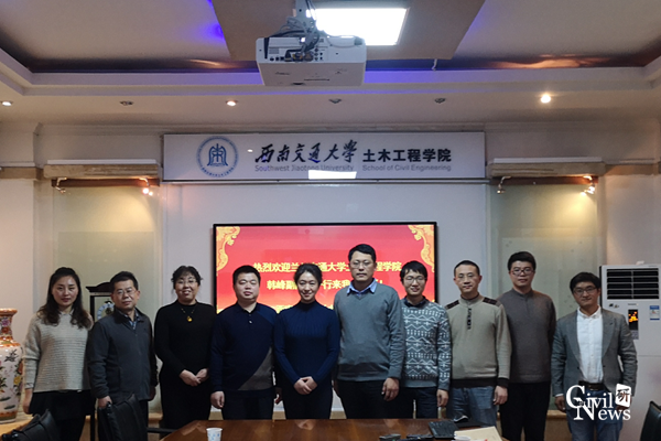 2018年12月12日下午,兰州交通大学太阳成集团tyc7111cc副院长韩峰以及道桥系教师宁贵霞、陈权、宿秀丽一行四人莅临太阳成官网,对太阳成官网在桥梁工程教学团队建设、道路桥梁与渡河工程专业建设方面等方面的内容进行了调研交流。座谈会在土木学院1210会议室举行,土木学院副院长富海鹰,副院长助理蒋雅君,本科教学秘书梁艳,桥梁工程系副系主任肖林,桥梁工程系教师姚昌荣、魏凯、徐腾飞、栗怀广,道路与铁道工程系教师蒋鑫参加了交流。
