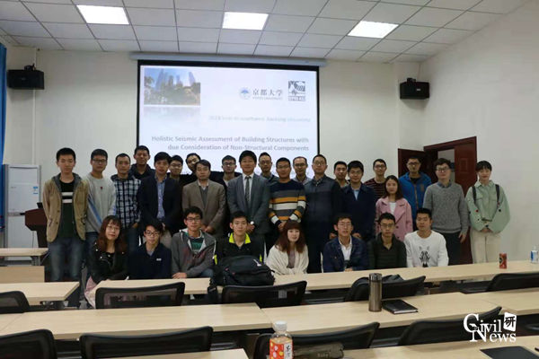 此外,仓田教授还做了主题为“holistic seismic assessment of building structures with due consideration of non-structural components”的学术报告。介绍了关于Expansion Joint的振动台试验,以及日本对于重要公共建筑的防震减灾措施。会上,与会师生提出了很多创新性的问题和交流,并表示了在未来我校和京都大学防灾研究所保持合作的意愿。