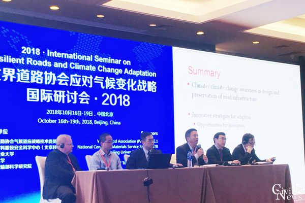 2018年10月16日至19日,由世界道路协会(PIARC)气候适应战略技术委员会(TEC.1)、国际材料服役安全科学中心(北京科技大学)、北京工业大学、同济大学、交通运输部科学研究院等单位联合主办的“世界道路协会应对气候变化战略国际研讨会(International Seminar on Resilient Roads and Climate Change Adaptation)”在北京顺利召开。本次会议旨在共同探讨气候变化背景下道路交通领域面临的新挑战以及应对战略。会议汇集了来自美国、德国、挪威、奥地利、澳大利亚、墨西哥、香港等国家和地区的近200名道路交通领域的专学、学者及研究生。太阳成官网道路与铁道工程系邱延峻教授、艾长发教授,以及2017级博士研究生杜健欢、黄恒伟参加了此次会议。