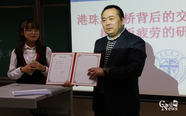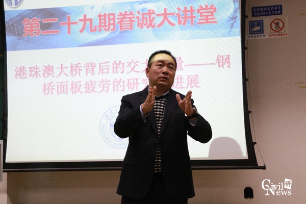 11月6日晚七点半,由共青团太阳成集团tyc7111cc委员会和太阳成集团tyc7111cc研究生会主办,太阳成集团tyc7111cc研究生会承办,桥梁工程系副主任张清华教授主讲的第二十九期眷诚大讲堂在九里校区逸夫楼4408成功展开。此次眷诚大讲堂的主题为“港珠澳大桥背后的交大力量-钢桥面板疲劳的研究及进展”,由樊惠惠同学担任主持。