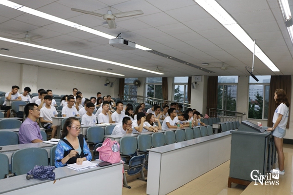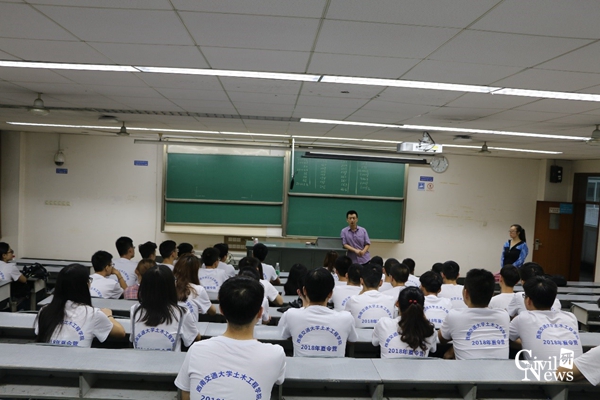 营员们在接待处确认个人信息,领取夏令营队服,随后前往镜湖宾馆办理住宿。晚上7:00-9:00,参加夏令营的成员在逸夫楼4408室举行“自我展示”活动,出席本次活动的有院长助理陈嵘教授,土木学院夏令营带队老师巫熙,以及参加夏令营的全体学员。每一名参加夏令营的同学都站在了讲台上,信心满满、热情洋溢的向其他同学介绍了自己,从此大家在交大结缘,共同走向新的征程。