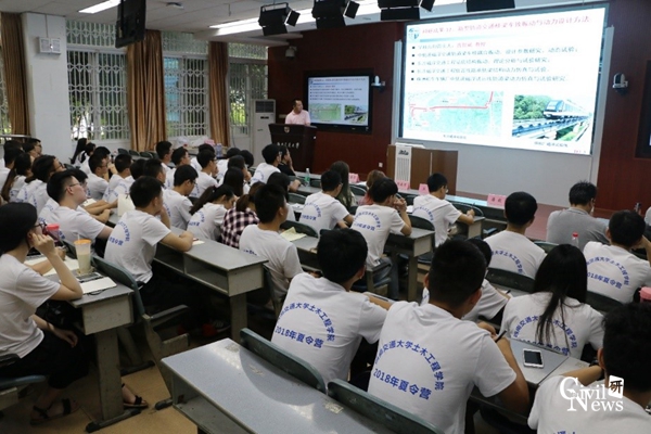 下午14点,全体营员准时聚集在逸夫馆4105进行了学术交流活动,聆听各系室分管研究生工作的副主任讲解各系教学科研的具体情况,包括各系室的研究方向、研究团队、研究成果和获奖情况。同时,来自西南勘察设计院的王新高级工程师就个人在专业提升和工作中的心得与大家进行了分享。全体营员聚精会神,表现出了浓厚的兴趣,讲解结束后纷纷举手提问,问题直击当下研究热点,高手层出不穷,得到在场老师的肯定和细心解答。