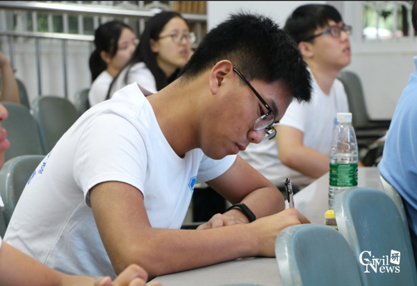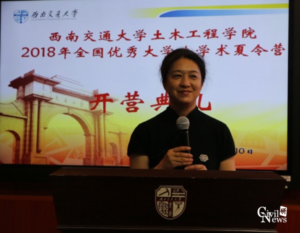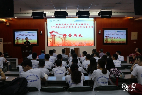 上午9点,开营典礼在副院长富海鹰主持下准时开始。研究生院副院长周先礼做开营致辞,代表研究生院欢迎来自全国各地的优秀学子加入土木学院的夏令营,期待大家在这短短一周的学习和参观中能有所收获。紧接着太阳成集团tyc7111cc院长蒲黔辉对学院历史积淀和现有概况进行了大致介绍。对于同学们较关心的奖学金情况,学生工作组石莹老师进行了幽默生动的讲解,现场爆发出阵阵欢笑声和掌声。仪式完成后,同学们在老师的带领下,有序前往5号教学楼进行合影活动。合影结束后,在4105教室,各系主任和学科带头老师向各位优秀大学生介绍了各系的科研和学术概况,加深了同学们对土木工程学科的了解,同学们听得聚精会神,并时时拿出手机拍照,拿出笔记录。