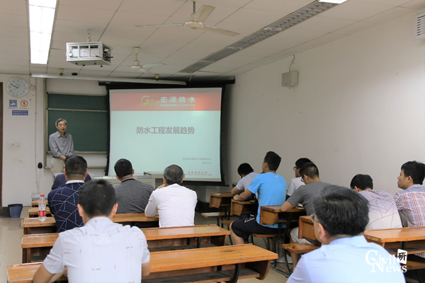 胡蔚儒总工首先就传统防水和现代防水各自的特点进行了详细讲解,阐述了现代防水工程与技术的发展,同时也指出了防水工程中存在的一些问题,进而引出了“安全、节能、绿色、环保”的现代防水观。此外,胡蔚儒总工还介绍了工程防水与建筑防水的应用领域、防水技术要点以及防水技术的现状,并和在场的同学们一起探讨了现代防水技术的发展趋势。