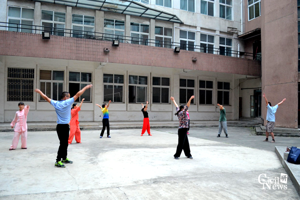 每周一下午七点,学院爱好太极拳的教师们来到九里校区土木馆的天井空地由校外专业的王萼老师指导进行每周一次的习练活动。