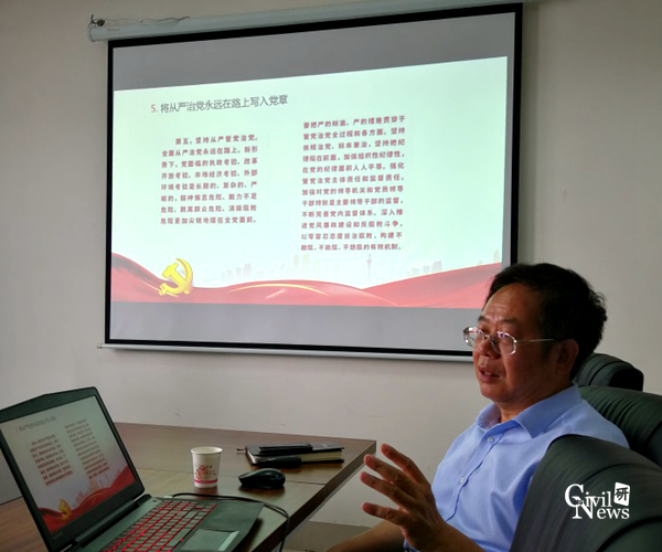 首先,刘书记针对新党章上了一次专题党课,特别对新党章的修改要点进行了解读,并强调认真学习党章应知行合一,要在工作和社会实践中努力践行党的宗旨、增强自信、坚定信念,加强党性、坚定方向,不忘初心、牢记使命,始终做党章的实践者、维护者,在新时代的教育事业上树立起共产党员的光辉形象。