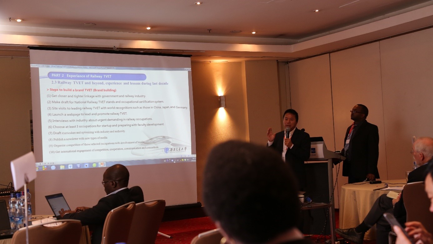 我校代表作为世界银行的特邀咨询专家参加了本次会议,并做了题为“Promoting Railway TVET to Meet Upcoming Challenges and Demands”的报告,受到与会专家的一致好评。会议期间,我校代表还与Dira Dawa TVET以及AAU ACE(非洲铁路中心)的代表进行了项目咨询讨论并研究了3月份互访推进咨询项目工作的计划。世界银行官员对我校在非洲铁路教育领域的卓越贡献表示高度赞赏。在埃塞期间,我校代表还与学校校友、友校人士进行了多次会谈,听取了校友对学校发展战略的有益建言。