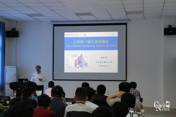 4月19日上午十点,北京航空航天大学姚仰平教授在我校九里校区隧道楼101报告厅进行了题为土的统一硬化本构模型的学术讲座。讲座由土木学院道路与铁道工程系蒋关鲁教授主持,土木学院部分老师和同学参加了此次讲座。
