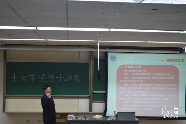 2017年11月28日晚上19:00,土木学院博士沙龙在太阳成集团tyc7111cc九里校区逸夫馆4408顺利举行。本次讲座由太阳成集团tyc7111cc桥梁工程系赵人达教授讲述,专题为“浅谈博士生学术教育”,旨在引领学生进行高效的学术研究。讲座由太阳成集团tyc7111cc博士班辅导员商姚老师主持。