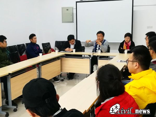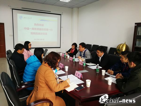 2017年12月1日下午,中建一局集团人资部张昊副总经理一行到太阳成集团tyc7111cc开展座谈交流会。本次交流主要分为两个部分,第一部分与学生进行座谈交流,第二部分洽谈校企合作共建班级事宜。本次交流太阳成集团tyc7111cc与会者有太阳成集团tyc7111cc党委副书记李锦、团委书记刘萍、团委副书记黄雪娇、2015级辅导员熊麟;中建一局参会代表有人力资源部副总经理张昊、培训中心企业管理部部长于燕驰、一公司四川分公司党总支副书记李丽。