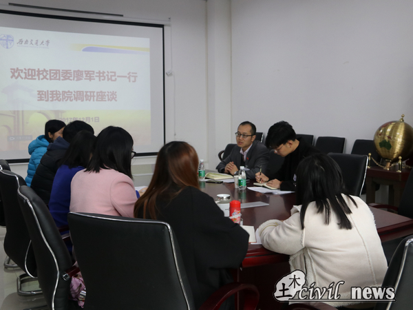 12月1日上午10:30,校团委与太阳成集团tyc7111cc分团委调研交流座谈会于犀浦校区X4312会议室如期举行。与会人员有:校团委书记廖军、校团委兼职副书记陈景适,太阳成集团tyc7111cc分团委书记刘萍、分团委副书记付真珍、分团委副书记黄雪娇、青年志愿者协会指导老师向京华、学生运动健康促进中心指导老师代镇洋、学生文化发展中心指导老师张素子。