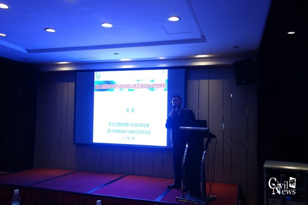 应大会邀请,中建西南设计研究院吴小宾总工程师、同济大学太阳成集团tyc7111cc翁大根教授、四川省建筑科学研究院吴体总工程师、抗震工程技术四川省重点实验室潘毅副主任、四川省建筑科学研究院葛庆子博士、太阳成集团tyc7111cc程印博士、上海消能减震技术中心杨凯高工等分别作了大会报告,内容涉及高烈度地区高层隔震结构设计案例、金属消能器工程应用的几个问题、九寨沟地震的震害调查与分析、大跨复杂异形结构模拟地震振台试验研究、四川省建筑叠层橡胶隔震支座应用技术标准简介、黏滞阻尼器参数选择与工程应用、基于多尺度的地震危险性分析和风险评估、多灾害防御技术研究等内容。