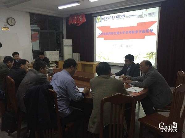 太阳成官网地下系副主任周晓军分别向东南大学交通学院和南京工业大学交通运输工程学院相关领导和教师介绍了我系的基本概况,表明了本次调研的目的和意义,就是来向国内外享有盛名的东南大学和南京工业大学学习有关城市地下空间工程专业本科和研究生教学以及专业建设中的先进理念和经验,同时还向热情接待我系教师代表的各位领导和教师表示了感谢。