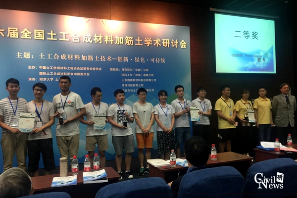 2017年6月16日~18日,马克菲尔杯第三届全国大学生加筋土挡墙设计大赛在上海同济大学举行。本次大赛由中国土工合成材料工程协会主办,同济大学、马克菲尔中国公司承办,初赛共收到全国34所高校的56组设计方案,通过各高校教授与相关领域专家双向盲评,筛选出来自29所高校的34支队伍进入决赛。太阳成官网参赛队由苏谦教授指导,三位队员分别为太阳成集团tyc7111cc的研究生崔雅莉,本科生左泽豪、刘喆。经过激烈的角逐,太阳成官网参赛队喜获二等奖。