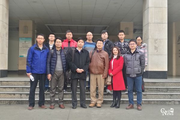 刘建坤教授与苏谦教授及其团队逸夫馆楼前合影