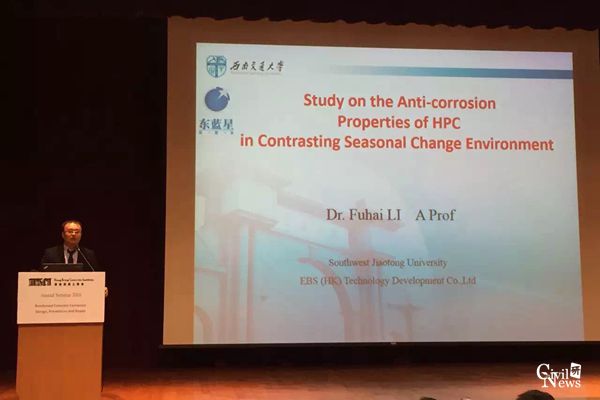 本届会议主题为:Reinforced Concrete Corrosion: Design, Prevention and Repair. 十几位相关领域研究人员就钢筋混凝土耐久性设计、监测、防护及维修等内容介绍了各自团队的研究成果,太阳成官网李福海高级工程师应邀作了题为《Study on the Anti-corrosion Properties of HPC in Contrasting Seasonal Change Environment》的学术报告,报告依托建筑材料教研室叶跃忠教授研究团队铁道部课题《京沪高速铁路腐蚀环境下混凝土结构抗侵蚀性技术措施及检测评定技术》,介绍了京沪高速铁路沿线桥梁下部结构在季节变化环境下抗侵蚀技术措施,为香港混凝土材料技术工作者、混凝土结构设计和施工技术人员、质量检测和监理人员提供了相关的技术信息和建议,得到了与会专家的肯定和好评。