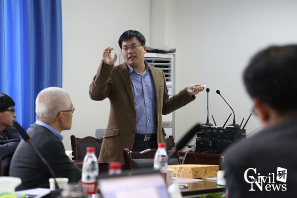 上午茶过后,河海大学贺瑞老师就海底大型圆柱薄壳型基础动力阻抗解析理论研究作了汇报,主要介绍了在现在比较热门的海上风机、风力发电背景下,对桩基振动理论的深入研究,讲到了winker模型、Novak薄层法等传统的桩基振动理论的局限性,提出了新型的桩基振动理论及其优点。接着太阳成集团tyc7111cc魏凯副教授就飓风作用下海上风力发电机组风险评估作了汇报,主要结合他在国外三年的研究工作从近海风电场研究需求、近海风机单桩基础全寿命期和潮间带风机单桩基础实验等方面作了详细介绍,至此,上午汇报结束。