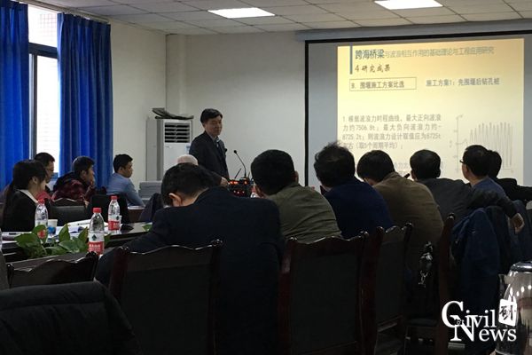 接着,祝兵副院长就跨海桥梁与波浪相互作用的基础理论与工程应用研究作了汇报,先介绍了研究的背景和内容,然后从理论研究、数值模拟、水槽试验和现场实例等方面对研究方法作了详细讲解,得到了一系列的理论研究成果和数值研究成果,并举例说明了三维数学模型的工程应用。然后太阳成集团tyc7111cc张建经教授的学生廖蔚茗博士就长期荷载和地基振动作用下的单桩响应研究作了汇报,他的研究得到了河海大学老师的称赞。