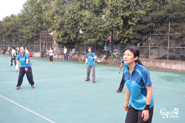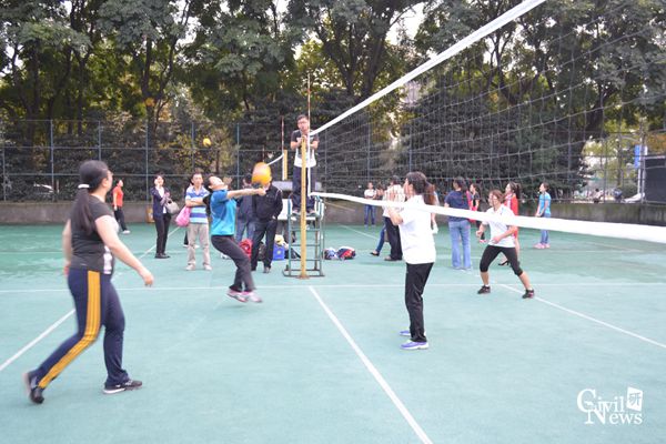 第二局开局,土木女队与机关二队打得难解难分,为了接到对方的大力扣球,我们女队成员甚至做出了飞身扑球的高难度动作。但是,处于防守方的土木女队体力消耗太大,在均势维持了一段时间后,便开始接连出现失误,最终比分定格在10:25,不敌机关二队。