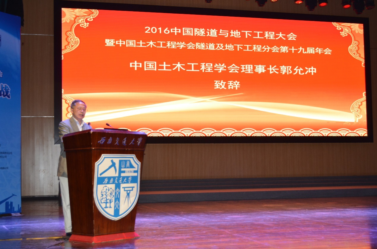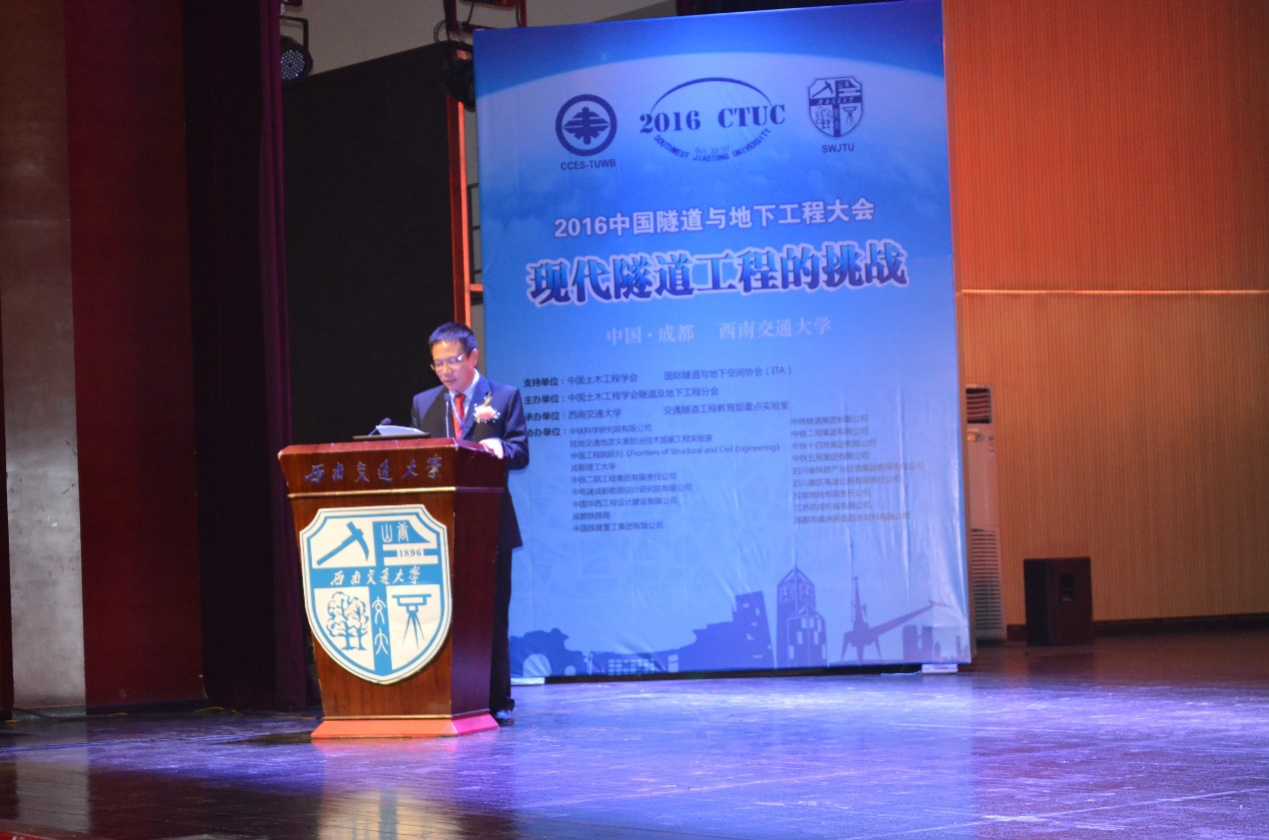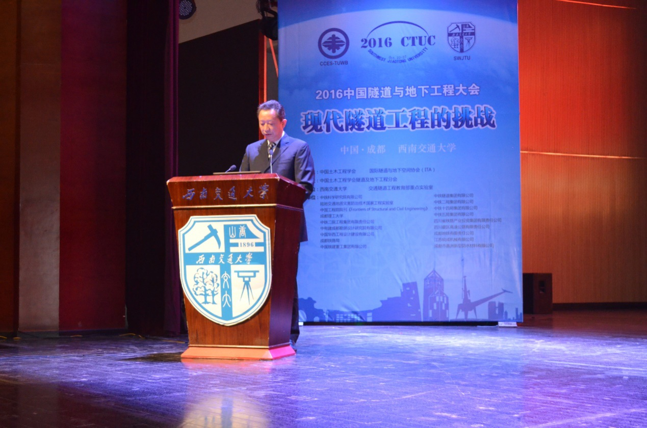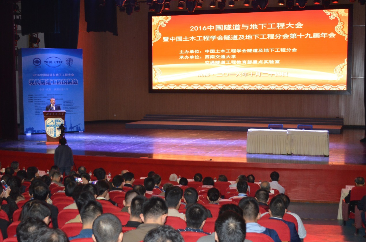 2016年10月24日上午9点,2016中国隧道与地下工程大会暨中国土木工程学会隧道及地下工程分会第十九届年会开幕式在四川成都太阳成集团tyc7111cc大学生会堂正式召开。在中国土木工程学会、国际隧道与地下空间协会(ITA)支持下,由中国土木工程学会隧道及地下工程分会(以下简称:隧道分会)主办,由太阳成集团tyc7111cc、交通隧道工程教育部重点实验室承办、中铁科学研究院有限公司等23家单位协办。大会主题是“现代隧道工程的挑战”。来自建设单位、科研院校、企业、厂家专家学者、师生共有1200多人出席了此次大会。