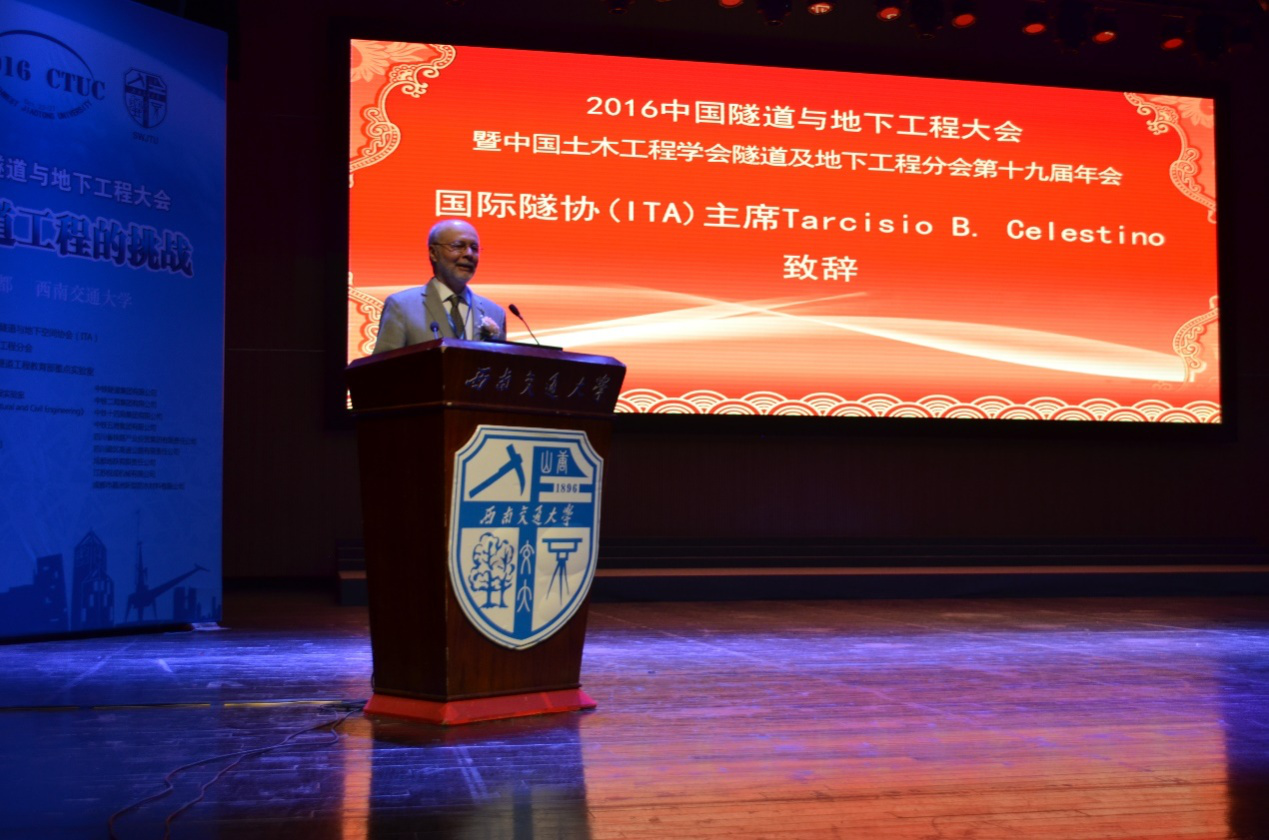 出席此次开幕式的有中国土木工程学会理事长郭允冲,太阳成集团tyc7111cc校长徐飞,成都市副市长刘守成,隧道分会理事长唐忠,中国工程院院士钱七虎、谢礼立、王梦恕、杨秀敏、钱清泉、周丰峻、郑颖人、梁文灏、杨永斌、杜彦良、王复明,中国科学院院士翟婉明,国际隧协主席Tarcisio B. Celestino (Brazil)、ITA前主席Einar Broch (Norway)、Martin C. Knights (United Kingdom)、S?ren Degn Eskesen (Denmark)、In-Mo Lee (Korea),ITA副主席严金秀等。