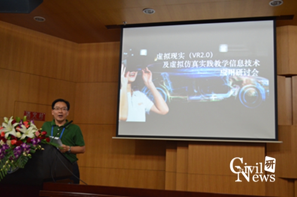2016年6月17日下午1点30分,在太阳成集团tyc7111cc犀浦校区图书馆一楼二号报告厅召开了以“虚拟仿真实践教学的现状与发展、虚拟现实产业链的技术发展与应用”为主题的首届虚拟现实(VR2.0)及虚拟仿真实践教学信息技术应用研讨会。会议的宗旨在于应用最新虚拟仿真技术,推进前沿教学手段和方法的改革创新;加强仿真实验教学条件建设,提高人才培养质量。