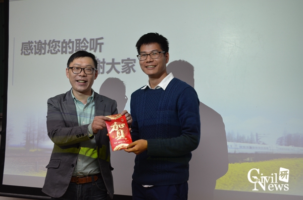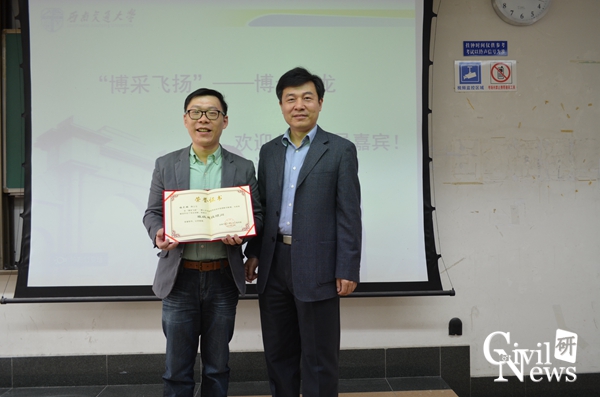 紧接着任万敏博士就工作方面与在场学生进行交流,他分析了近几年铁二院的招生情况,提醒同学们就业压力的日益增长对研究生及博士生的自身能力有了更高的要求。对于他的成功,他谈到有空杯心态即你想做什么?你只能做什么?只能你做的是什么?同时需得到肯定与机遇。