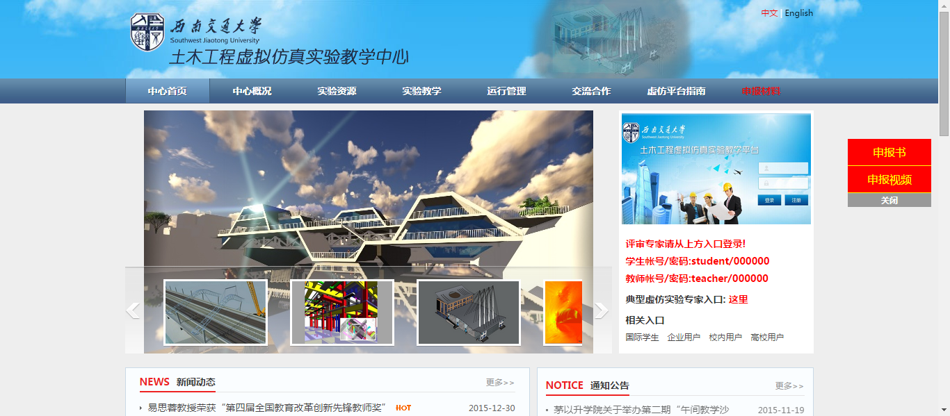 土木工程虚拟仿真实验教学中心(http://vrcc.swjtu.edu.cn/)