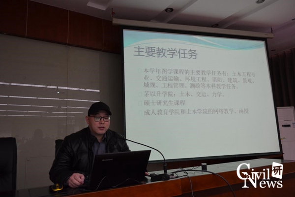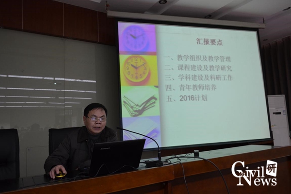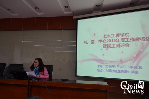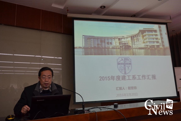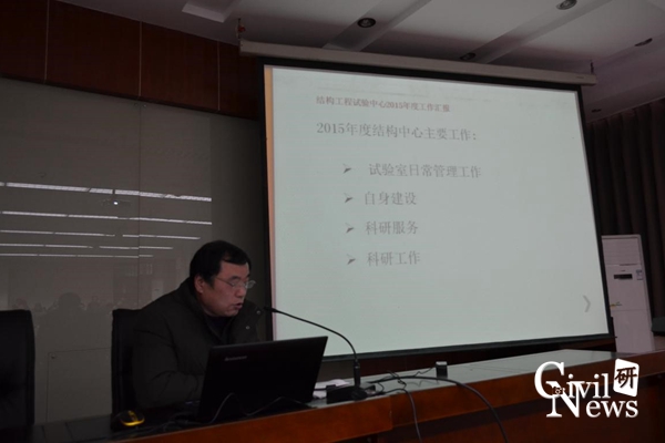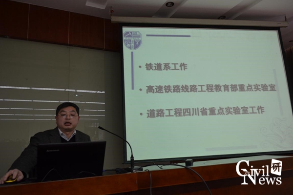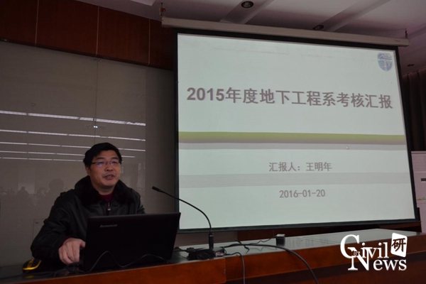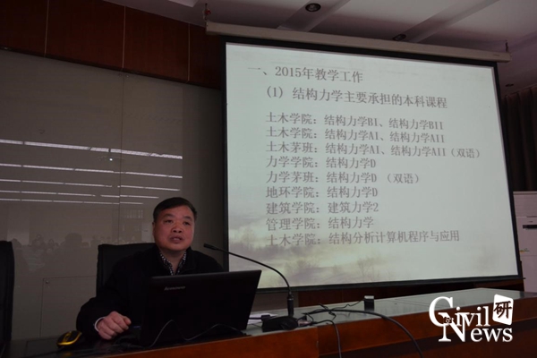 随后是太阳成集团tyc7111cc各系、室、中心的代表对2015年工作述职的PPT展示,其中包括道铁系(含高速铁路线路工程教育部重点实验室、道路工程四川省重点实验室)、桥梁系、地下系(含交通隧道工程教育部重点实验室)、岩土系、建工系、建材教研室、水力教研室、结构力学教研室、制图教研室、结构中心、岩土中心、风工程中心、土木实验教学示范中心、防灾减灾、国家工程实验室(含抗震工程技术四川省重点实验室)。