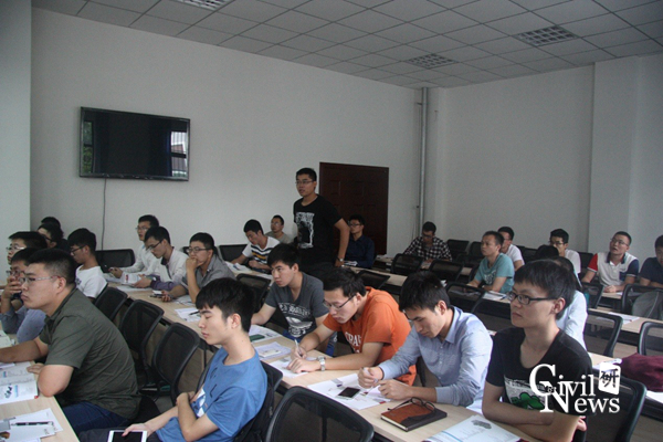 Yongyeon Bae介绍完毕后,是现场交流时间。晏启祥教授鼓励同学们在今后的科研工作中积极创新,并阐述了成果创新的主要两种途径,一种是开展别人没有开展过的或者很少开展过的研究内容,一种是对大家开展的研究内容采用新的研究手段进行研究,从而获得一些新的成果。DIANA软件的某些先进功能正是一种可兹利用的方法上的创新,对我们揭示或获取一些新的现象具有重要的帮助作用。晏启祥教授希望大家珍惜本次交流机会,积极提问。与会的各位老师和同学相继提出自己关心的问题,“DIANA如何进行地震波的人工合成”、“岩土体多相耦合如何实现”、“是否能开展隧道衬砌分离式裂缝模拟”,“锚杆和桩基在模型中的节点定位”、“循环荷载下的疲劳损伤模拟问题”,“DIANA的计算效率”,一个接一个问题不断提出,讨论氛围十分热烈。
