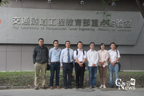 讲座结束后,在张志强教授的带领下,郭璞团队人员及部分老师、学生到交通隧道工程教育部重点实验室参观。张志强教授向郭璞团队介绍了实验室各仪器设备,最后在实验室前合影留念。