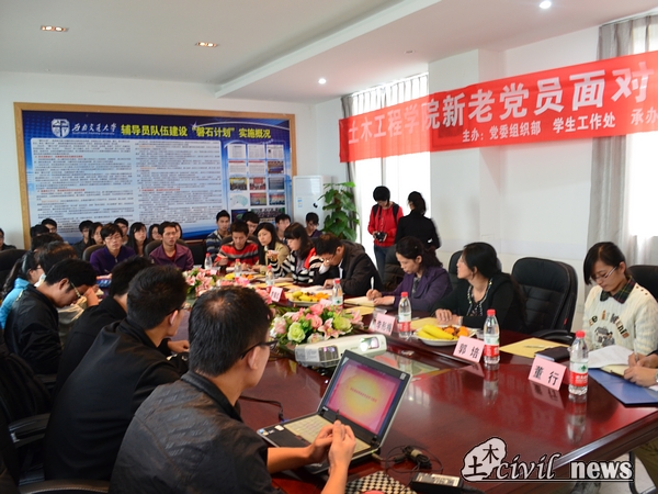 由党委组织部、学生工作处主办、土木学生第十二、十三、十四党支部承办的示范性学生党支部特色活动——土木学院新老党员面对面交流活动。这次活动分为3期,分别由老教授、党员教师、优秀学生党员代表为大家讲述交大历史、学业规划和奋斗历程。