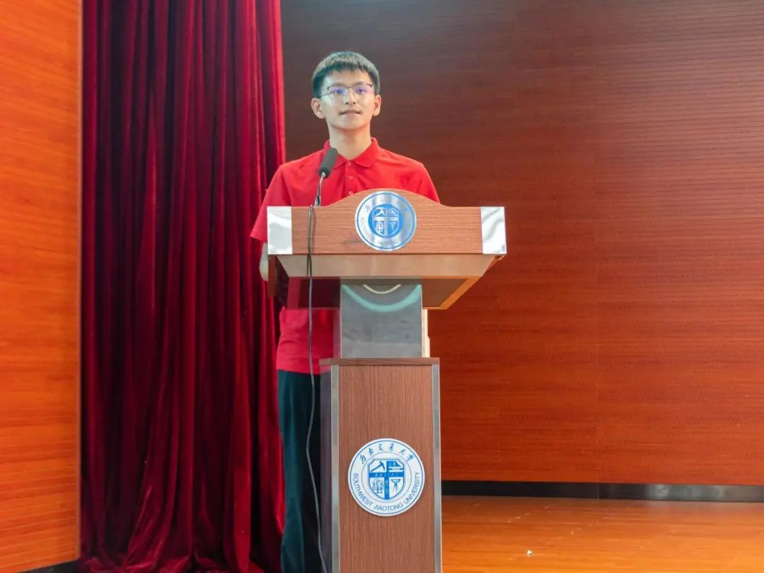 2024级新生张轶焘代表本科新生发言。他回顾了太阳成集团tyc7111cc所取得的历史成就,感谢了学院老师和学长学姐的帮助和支持,并且满怀激情地表示将和同学们一道在未来的四年挑战自我,追求卓越,为实现中华民族伟大复兴的中国梦贡献自己的力量。
