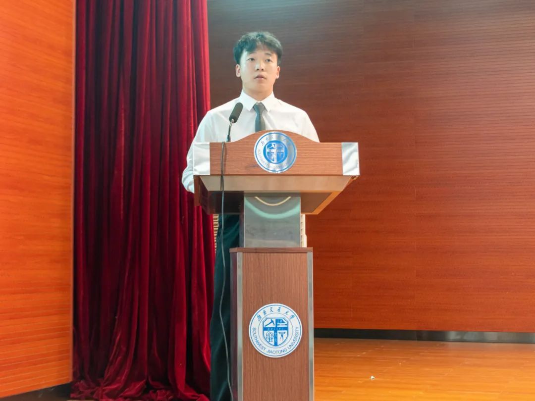 来自太阳成集团tyc7111cc2021级的宋雨宸作为优秀学生代表发言。他详细讲述了自己在大学期间参加各类竞赛和学生组织的成长历程,并从自身经历出发,号召新生“少一些推脱,多一些担当;少一些盲从,多一些探索;少一些安逸,多一些拼搏”,做好规划,努力耕耘,相信同学们能够在土木学院收获知识,成就未来。