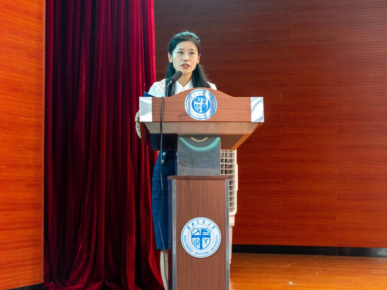 在全场热烈的掌声中,学院领导为新生代表佩戴院徽。